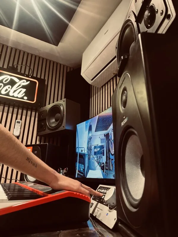 We werken met high-end opnameapparatuur, microfoons en interfaces, zodat elke vocal en elk instrument helder en krachtig wordt vastgelegd. Of je nu een track schrijft, een demo opneemt of een volledig nummer produceert, bij ons heb je alles wat je nodig hebt om je geluid naar een hoger niveau te tillen.